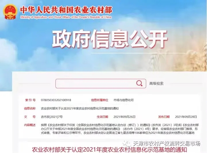 近期, 国家农业农村部公布了“2021年度全国农业农村信息化示范基地”名单,BB贝博艾弗森官网客户“天津农村产权交易所”入选,是全国唯一入选示范基地的农村产权交易平台,也是天津唯一一家入选管理型示范基地的单位。双方长期以来保持深度、良好的合作关系,近期合作成果捷报不断。